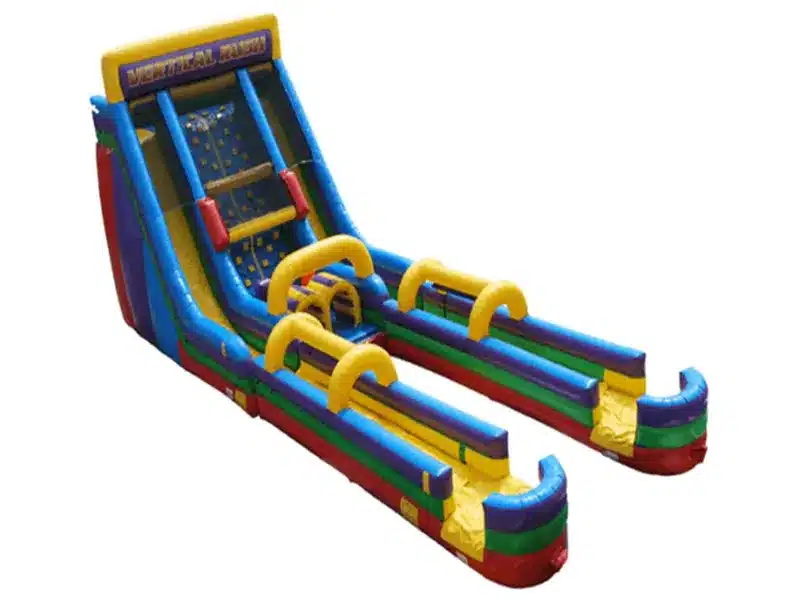 Experience the ultimate summer fun with our Vertical Rush Double Water Slip and Slide! Perfect for backyard parties, community events, or any occasion, this inflatable slide is sure to keep everyone entertained for hours. Featuring dual lanes, participants can race against each other to see who can reach the refreshing splash pool at the bottom first. The tall, vertical design adds an extra thrill to the sliding experience, guaranteeing laughter and excitement for all ages. Constructed with durable materials and safety features, our Vertical Rush Double Water Slip and Slide ensures a worry-free playtime. It's easy to set up and maintain, making it a hassle-free addition to your event. Beat the summer heat and create unforgettable memories with the Vertical Rush Double Water Slip and Slide. Reserve yours today!